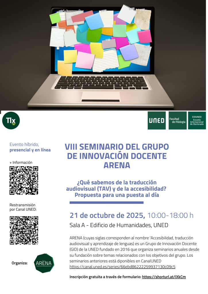 - VII Seminario del Grupo de Innovación Docente ARENA: La traducción audiovisual didáctica (TAD): pasado, presente y futuro