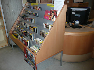 Esperamos que así resulte más fácil y cómoda su localización y selección. Está situado junto al mostrador de préstamo de la Mediateca, lo que permite socilitar y recibir información de la persona responsable del préstamo.