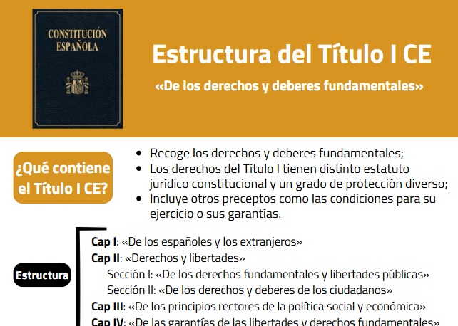 En el Título I de la CE se recogen los derechos y deberes fundamentales, aunque su contenido no se reduce a ellos. Incluye otros preceptos como las condiciones para su ejercicio o sus garantías. Tampoco todos los derechos fundamentales contenidos en el Título I tienen el mismo estatuto jurídico constitucional, es decir, no todos gozan de la misma protección constitucional. Para comprenderlo, la primera tarea debe ser la de identificar el contenido y la estructura del Título I CE.