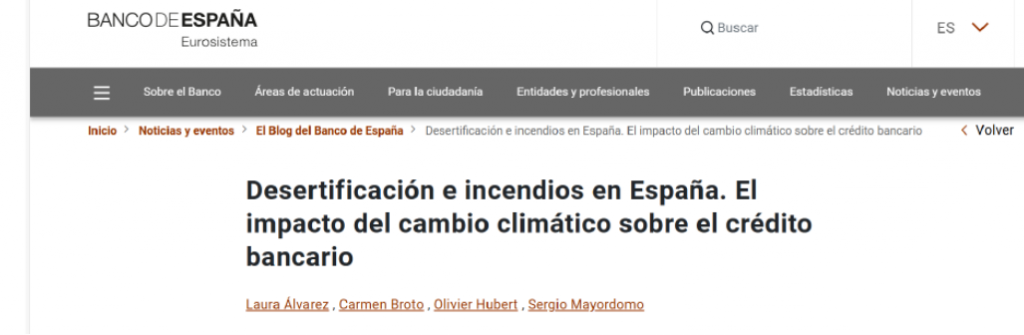 La noticia del Banco de España analiza cómo dos fenómenos ambientales crecientes en España —la desertificación y los incendios forestales— están generando riesgos físicos que afectan de forma directa a la financiación empresarial. Utilizando datos municipales y sectoriales, el estudio identifica que un aumento de la aridez en una zona produce a medio y largo plazo una reducción del crédito bancario disponible, ya que las empresas localizadas en áreas degradadas presentan un mayor deterioro operativo y, por tanto, un mayor riesgo de impago. Además, los incendios forestales tienen un efecto más inmediato: disminuyen ventas, empleo y valor de activos, lo que lleva a los bancos a restringir el crédito o a concederlo en condiciones más estrictas.