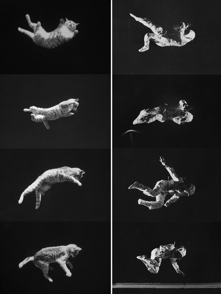 Humano reproduciendo la caída de un gato en 1969 (Photo credit: Ralph Crane /The LIFE Picture Collection).