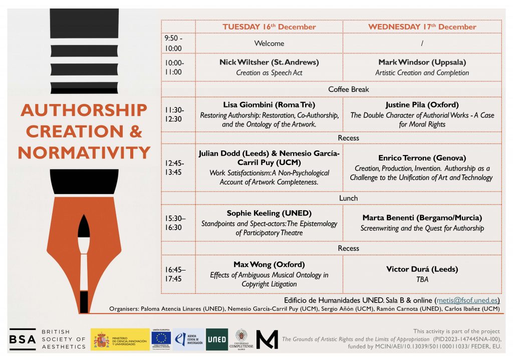 This is a two-day workshop (16-17th December) taking place at Edificio de Humanidades UNED – Sala B, from 10am to 17:45pm. The event will also be streamed online. Attendance is free an open to all, but if you wish to attend online please email us at metis@fsof.uned.es at least two days in advance.