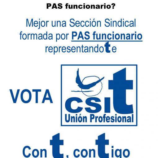 En csIt Unión Profesional te hemos demostrado durante estos cuatro años que estamos a tu lado y pretendemos seguir trabajando para ti, PAS FUNCIONARIO. Por ello, te animamos a participar en las elecciones que se celebran el próximo martes 4 de diciembre y te pedimos sigas confiando en nosotros y nos des tu voto para lograr que la nueva Junta de Personal siga teniendo como prioridad la defensa del PAS funcionario de la UNED, sin interferencias de ningún tipo.