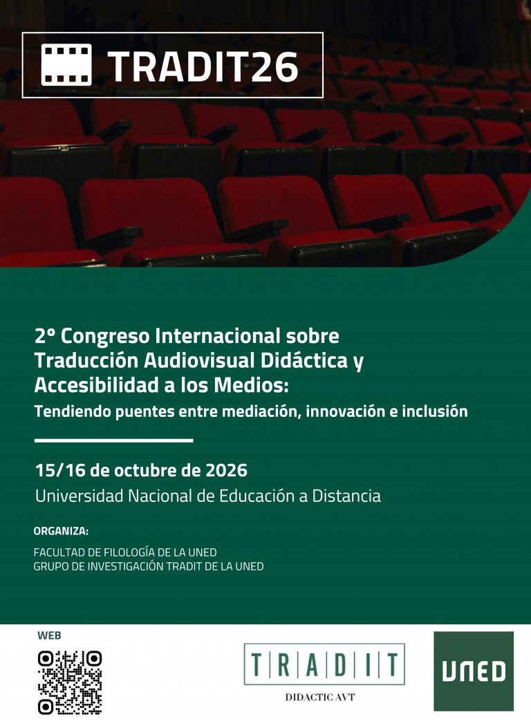The TRADIT group is pleased to announce that TRADIT26: 2nd International Conference on Didactic Audiovisual Translation and Media Accessibility will be held at the UNED, Madrid (Spain), on Thursday 15th and Friday 16th October 2026.